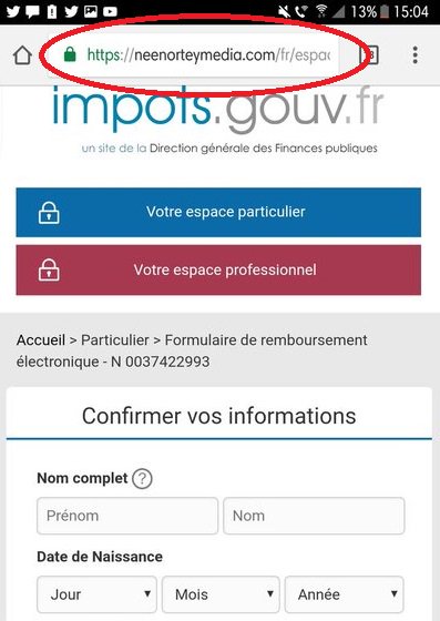 Un faux site, mais un vraie arnaque. Réfléchir et cliquer et surtout pas l'inverse ! Certains contribuables reçoivent un mail les informant qu'ils ont droit à un remboursement de la part des services des impôts. Remboursement d'impôts avec crédit d'impôt. Un faux remboursement de trop perçu des impôts.
